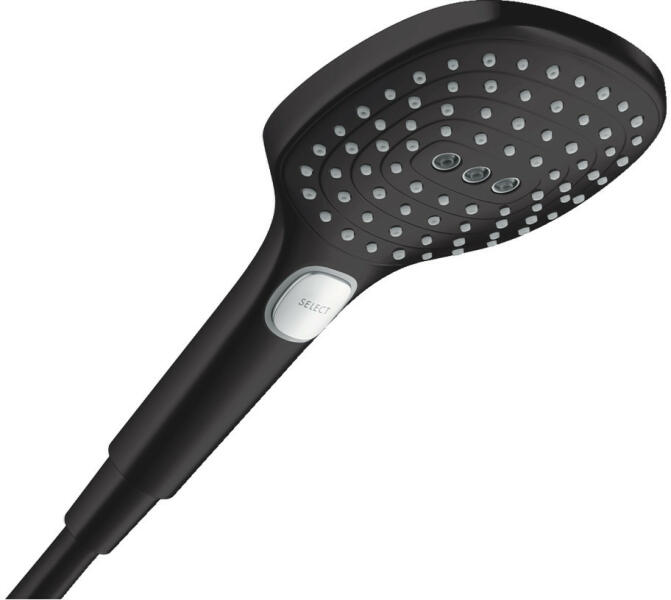 Hansgrohe Raindance Select E, kézi zuhany 120 3jet, matt fekete, HAN-26520670 Termékleírás és paraméterek A zuhanymodul mérete: 120 mm Kényelmes áramtípusok váltása a Select gombbal Adatfolyam típusa: RainAir, Rain, Whirl Maximális térfogatáram 3 bar nyomáson: 15 l/perc Belső vízvezetékkel Öblíthető szennyeződésszűrő Csatlakozómenet G ½ Bemenetek mérete: DN15 Alkalmas