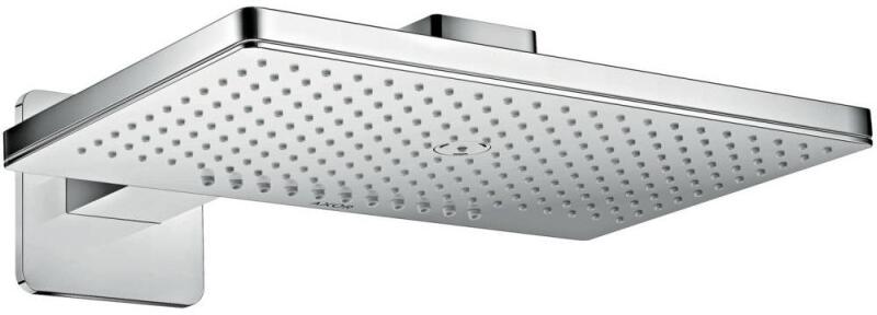 Hansgrohe AXOR fejzuhany 460x300 2jet zuhanykarral 460 mm, softcube rozetta 35275 000 (35275000) zuhanyfej mérete: 460 x 300 mm Zuhanykar hossza 460 mm Vízsugár fajta: Rain, RainStream Rain vízsugár átfolyási mennyisége (3 bar mellett): 18 l/perc Rain Stream vízsugár átfolyási mennyisége (3 bar mellett): 15 l/perc könnyen tisztítható, krómozott vízsugártárcsa tisztítás célj