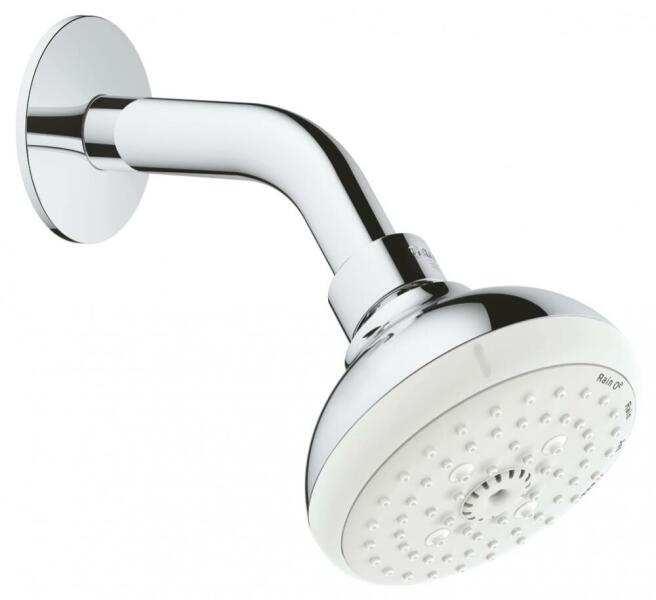 Grohe Rainshower 310 fejzuhany zuhanykarral 26257 000 (26257000) az alábbiakból áll: Rainshower Cosmopolitan 310 fejzuhany (27 477 000) 1 vízsugár: Rain Rainshower 450 mm zuhanykar (26 146 000) GROHE DreamSpray tökéletes zuhanysugár GROHE StarLight króm felület SpeedClean vízkőmentesíthető fúvókákkal DropStop, nincs csöpögés a fejzuhanyból a csaptelep elzárása után átfoly
