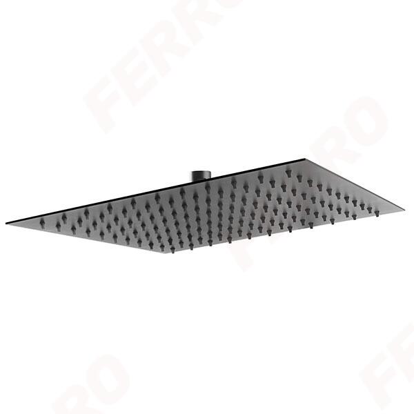 Ferro Slim fejzuhany 30x30 cm, matt fekete DSN08BL Méret: 300x300 mm Permetezési mód: eső Slim - vékony Ferro Easy Clean System – a vízkő egyszerű eltávolítása G1/2 csatlakozás csatlakozással Anyaga: rozsdamentes acél Matt fekete szín