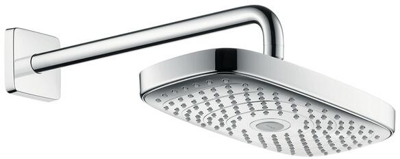 Hansgrohe Raindance Select E 300 2jet fejzuhany, 390 mm-es zuhanykarral, EcoSmart 9 l/perc króm/fehér 26609 400 (26609400)zuhanyfej mérete: 300 x 160 mm Zuhanykar hossza 390 mm Vízsugár fajta: Rain, RainAir Rain vízsugár átfolyási mennyisége (3 bar mellett): 9 l/perc RainAir vízsugár átfolyási mennyisége (3 bar mellett): 9 l/perc vízsugárszög állítás: Select átállítás a fe
