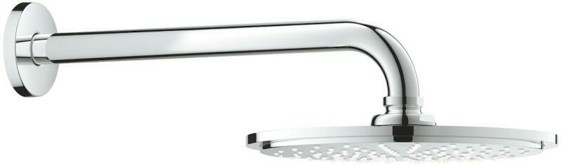 Jellemzők: Rainshower Cosmopolitan 210 fejzuhany (28 373 000) 1 vízsugár: Rain funkció GROHE DreamSpray tökéletes zuhanysugár GROHE EcoJoy 9.5 liter/perc vízmennyiség szabályozás Rainshower zuhanykar 286 mm (28 576) GROHE StarLight króm felület SpeedClean vízkőmentesíthető fúvókákkal DropStop, nincs csöpögés a fejzuhanyból a csaptelep elzárása után kezdve 0,5 bar áraml