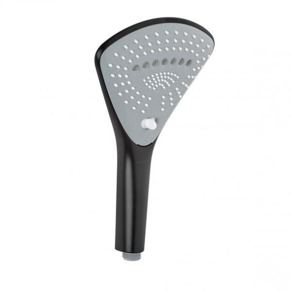 Mexen tartozékok - kézizuhanyfej Oval R-05, 3 funkciós, fekete, 79505-70 Kézi zuhanyfej kézi zuhanyfej forma: kerek (ovális) vízkő elleni rendszer 3 fejmód (eső, masszázs, vegyes) módosítsa a fej üzemmódot a gombbal Kivitel: fekete anyaga: PVC, ABS Csatlakozás: G 1/2" Magasság: 230 mm Fejméret: 108 mm Tömlő: nem tartozék
