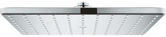 GROHE PureRain króm szórófej gömbcsukló ± 10°-os elforgatási szöggel csatlakozó menet 1/2" GROHE EcoJoy 6,6 liter/perc átfolyás-szabályozás GROHE DreamSpray tökéletes zuhanysugár GROHE StarLight króm felület SpeedClean vízkőmentesíthető fúvókákkal Inner WaterGuide belső vízvezető cső a hoszabb élettartam érdekében átfolyós vízmelegítővel is alkalmazható minim
