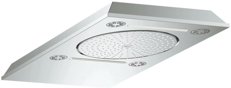 Rain, Bokoma Spray, Waterfall és ezek kombinációi 381 mm (szélesség) x 60 mm (magasság) x 677 mm (mélység) anyag: fém GROHE DreamSpray tökéletes zuhanysugár GROHE StarLight króm felület GROHE XL Waterfall extra széles vízesés zuhanyfunkcióval SpeedClean vízkőmentesíthető fúvókákkal normál vízsugár áramlása 3 bar-on: 1 x Rain vízsugár 300 mm: kb. 20 liter/perc 2 x XL