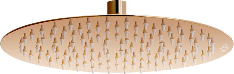MEXEN rozsdamentes acél zuhanyfej kerek 25 cm, rózsaszín arany, 79225-60 Műszaki adatok Anyaga: S304 rozsdamentes acél Kidolgozás: rózsaszín-arany Méretek: 25 cm Normál 1/2"-os csatlakozás Vastagság: 2 mm A fej felülete ellenáll az elszíneződésnek és a korróziónak Az esőzuhany gumi fúvókákkal rendelkezik, amelyek megakadályozzák a vízkő lerakódását
