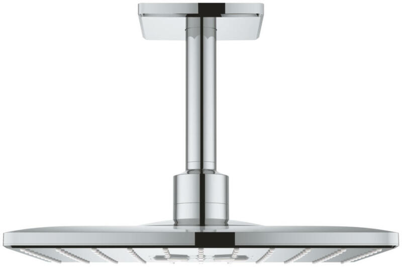 Grohe Rainshower SmartActive 310 Cube fejzuhany zuhanykarral, króm 26481000 Garancia: 5 év Anyag: fém/műanyag Telepítés: mennyezetre 2 permetezési mód: PureRain (továbbfejlesztett esőpermet nagyobb, lágyabb cseppekkel), ActiveRain (erős sugár a zuhanyfej közepéről) GROHE DreamSpray tökéletes zuhanysugárral SpeedClean vízkőmentesítő fúvókákkal Inner WaterGuide belső vízv