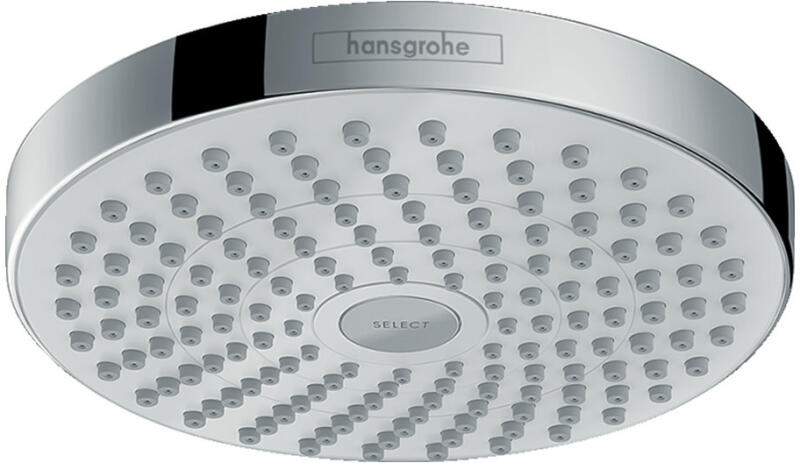 Hansgrohe Croma Select S, fejzuhany 180 2jet, fehér/króm, HAN-26522400 Termékleírás és paraméterek Zuhanyfej mérete: Ø 187 mm A patak típusa: Rain, IntenseRain Váltás a felső zuhanyzó Select gombjával Golyócsukló: a felső zuhany állítható dőlésszöge Vízsugár tárcsa anyaga: műanyag Maximális térfogatáram 3 bar nyomáson: 17 l/perc Eső áramlási sebessége (3 bar nyo