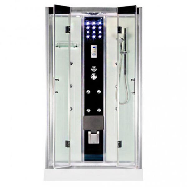 Tuluza 80x120 cm szögletes hidromasszázs zuhanykabin TULUZA hidromasszázs zuhanykabin Prémium kategóriás, európai gyártmányú termék. Méretek: 120 x 80 x 217 cm Zuhanytálca méretek: 120 x 80 x 15 cm A zuhanykabin tulajdonságai: Profil: alumínium Króm ajtó: kétszárnyú, zsanéros Üveg: 6 mm edzett üveg (elöl) 4 mm edzett üveg (hátsó fal) Zuhanytálca: akril, fehér Masszáz
