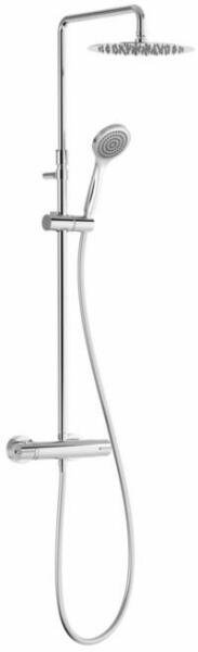 Falon kívüli termosztátos zuhanycsaptelep 250 mm-es gömbcsuklós fejzuhannyal Vízkőmentesített kézi zuhannyal Szatén zuhanytömlővel Teleszkópos zuhanyrúddal Zuhanyváltó beépített átfolyáskorlátozóval Króm kivitel