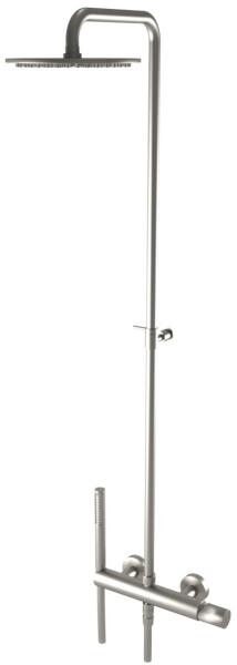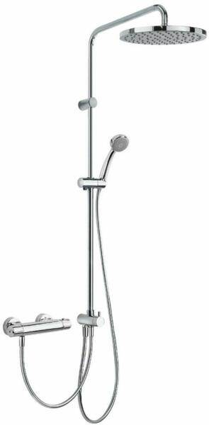 Falon kívüli termosztátos zuhanycsaptelep 200 mm-es gömbcsuklós fejzuhannyal Vízkőmentesített 80 mm-es kézi zuhannyal Szatén zuhanytömlővel Króm kivitel