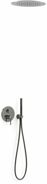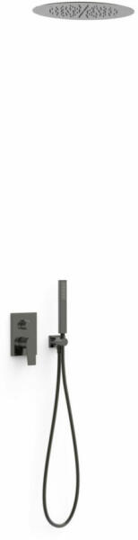 Falba építhető kivitel Tartalmazza a belső egységet Egykaros zuhanycsaptelep 380 mm-es mennyezeti fejzuhannyal Vízkőmentesített kézi zuhannyal és fali tartóval Szatén zuhanytömlővel Metál fekete színben