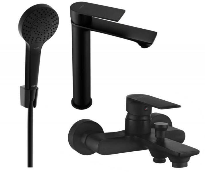 Tres Project alatti zuhany csaptelep kádkifolyóval és Rapid-Box belső egységgel, matt fekete 21128007NM Falba süllyesztett szerelés, beépített RAPID-BOX Elzárás és áramlásszabályozás Rapid-bo x és rejtett test, gyorsan és egyszerűen telepíthető Kádkifolyóval Zuhanytartó Kádkifoly ó kinyúlási hosszúsága: 143 mm Vízkő elleni kézi zuhany (sárgaréz) Szatén kivitelű