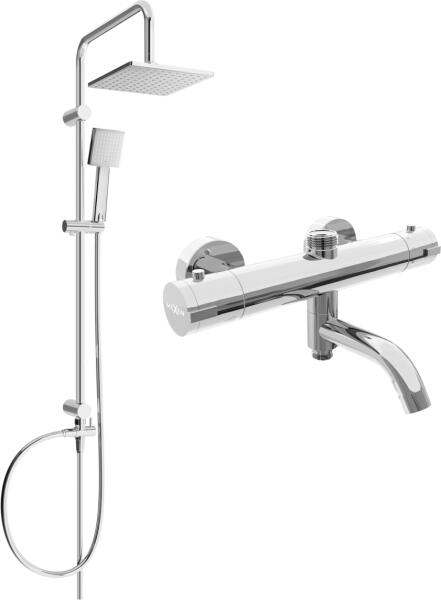 Műszaki adatok: Oszlop anyaga: rozsdamentes acél, ABS Oszlop felület: króm Magasság: 950 mm Oszlop szélesség: 22 mm Távolság a faltól: 380 mm Csúszó kézibeszélő tartó Állítható tartókonzolok Esőzuhany anyaga: műanyag Fejzuhany bevonat: króm Fejzuhany mérete: 200 mm Fej anyaga: műanyag A kézidarab felülete: króm A funkciók száma: 1 Csatlakozás: G 1/2" Kézfej magassá
