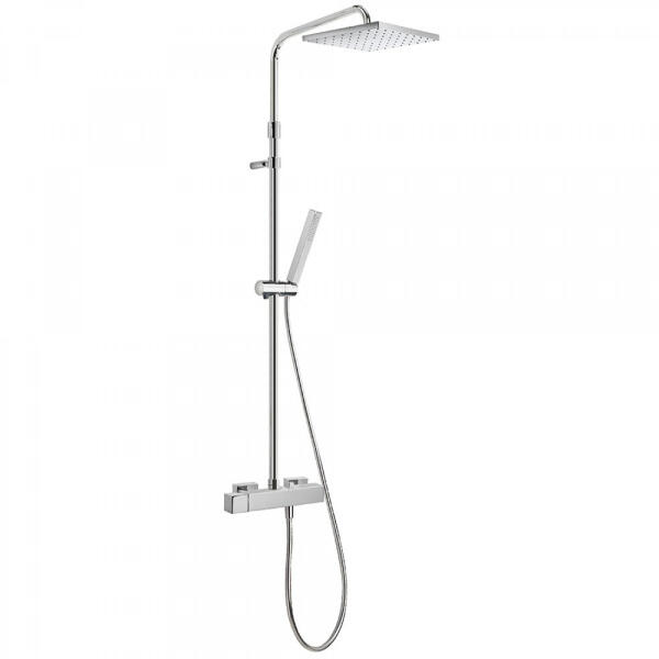 Falon kívüli kivitel Egykaros zuhanycsaptelep 250 x 250 mm-es fix fejzuhannyal Teleszkópos zuhanyrúddal Vízkőmentesítet t kézi zuhannyal Szatén zuhanytömlővel Króm kivitel