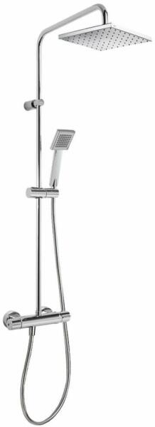 Falon kívüli termosztátos zuhanycsaptelep 200 x 200 mm-es gömbcsuklós fejzuhannyal Vízkőmentesített 80 x 80 mm-es kézi zuhannyal Szatén zuhanytömlővel Zuhanyváltó beépített átfolyáskorlátozóval Króm kivitel