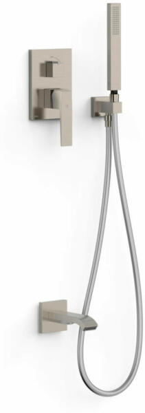 Falba építhető belső egységgel 2 utas, egykaros keverőcsaptelep Átfolyáskorl tozóval Kádtöltő V zkőmentes kézi zuhannyal és fali tartóval Szatén zuhanytömlővel Rozsdamentes acél színben