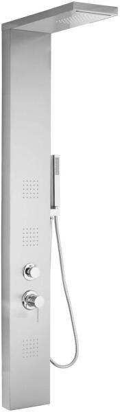 Többfunkciós panel hidromasszázzsal és vízesés hatással MANHATTAN - METAFORM Olaszország, szatén rozsdamentes acél felülettel, vízkőoldó tulajdonságokkal, szennyeződésállósággal, kiváló minőséggel, váltóval. A zuhanykabint hidromasszázs zuhanyrá alakíthatja, ha a régi akkumulátort erre a teljesen felszerelt panelre cseréli az összes tartozékkal. A MANHATTAN panel