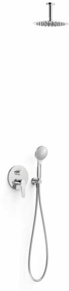 Falba építhető kivitel A belső egységet is tartalmazza Egykaros, 2 utas zuhanycsaptelep 250 mm-es gömbcsuklós mennyezeti fejzuhannyal Vízkőmentesített 110 mm-es kézi zuhannyal és fali tartóval Szatén zuhanytömlővel Króm kivitel