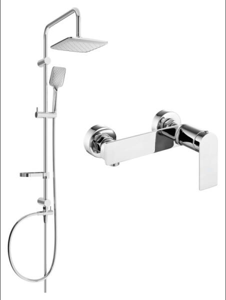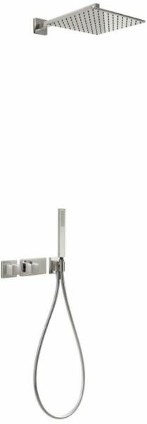 Falba építhető kivitel Tartalmazza a belső termosztátos egységet Átfolyáskorlátozóv al 300 x 300 mm-es gömbcsuklós fejzuhannyal Vízkőmentesített kézi zuhannyal és fali tartóval Szatén zuhanytömlővel Acél színben