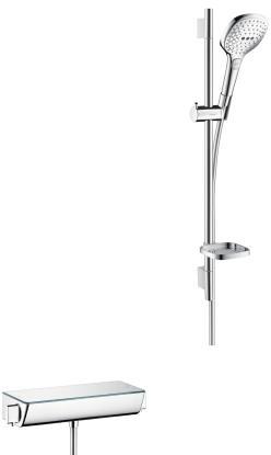 Hansgrohe Raindance Select E zuhanyrendszer termosztáttal és 65 cm-es zuhanyrúddal, króm 27038000 króm Összetevõk: Rain dance Select E 120 / Unica‘S Puro zuhanyszett 0,65 m (26622) Ecostat Select falsíkon kívüli termosztátos zuhanycsaptelep, DN15 (13161) Kiegészítõ termékek: S-csatlakoz ó adapter G ¾ csatlakozással, felújításhoz króm 02026000