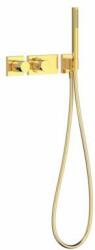 Falba építhető kivitel Tartalmazza a belső termosztátos egységet Átfolyáskorlátozóv al Vízkőmentesített kézi zuhannyal és fali tartóval Szatén zuhanytömlővel Arany színben
