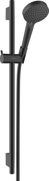Hansgrohe Vernis Blend, Vario zuhanygarnitúra zuhanyrúddal 65 cm, matt fekete, HAN-26422670 Termékleírás és paraméterek tartalmazza: kézi zuhany, zuhanyrúd, zuhanytömlő, csúszka zuhanyfej mérete: 100 mm áram típusa: Rain, IntenseRain áramtípusok váltása a vízsugarak korongjának elforgatásával zuhanytartó a dőlésszög 45°-os beállításával maximális áramlás 0,3 MPa-