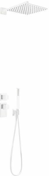 Falba építhető kivitel Tartalmazza a termosztátos belső egységet 300 x 300 mm-es gömbcsuklós fejzuhannyal Vízkőmentesített kézi zuhannyal Szatén zuhanytömlővel Matt fehér színben