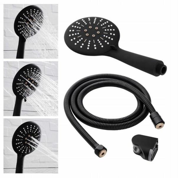 Rea kézi zuhanyszett, matt fekete REA-P4101 Garancia: 24 hónap Anyag: ABS Zuhanyfej: 26x12 cm Gégecső hossza: 150 cm Csatlakozás átmérője: 1/2 hüvelyk Szín: matt fekete A készülék műanyagból készült, amely tartós bevonattal van ellátva, amely megkönnyíti a tisztítást. A tömlő gumiból készült, rozsdamentes acélfonattal, horganyzott. A speciális bevonatnak köszönhető