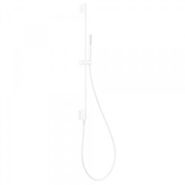 14 mm átmérőjű, 760 mm-es zuhanyrúd Vízkőmentesített kézi zuhannyal Szatén zuhanytömlővel Matt fehér színben