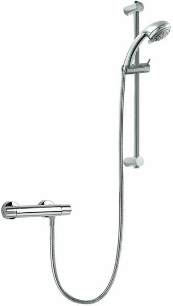 Falon kívüli kivitel Termosztátos zuhanycsaptelep Practic-Max zuhanyrúddal Masszázs kézi zuhannyal Duplán reteszelt zuhanytömlővel Króm kivitel