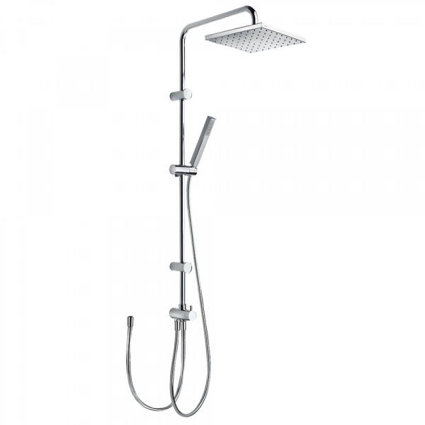 250 x 250 mm-es fix fejzuhannyal Állítható zuhanyrúddal Vízkőmentesítet t kézi zuhannyal Szatén zuhanytömlővel Összeköthető kád-, vagy zuhany csapteleppel Króm kivitel