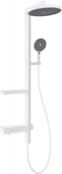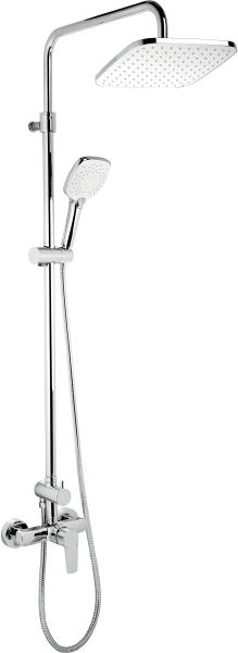 Termék leírása: Zuhanyoszlop anyaga: alumínium A zuhanyoszlop felületkezelése: fehér Magasság: 1301 mm Oszlop szélesség: 25 mm Távolság a faltól: 357 mm Fejzuhany anyaga: ABS A zuhanyzó felületkezelése: fehér Zuhanyzó mérete: ø255 mm Kézizuhanyfej anyaga: ABS A kézizuhanyfej felületkezelése: fehér A kézizuhanyfej funkcióinak száma: 3 Zuhanycső anyaga: PVC A tömlő fel