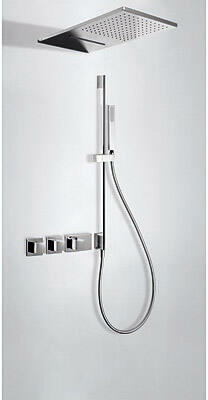 Vízelzáróval és víz mennyiség szabályzóval Rejtett csaptelep Beépített testet tartalmazza Fix esőztető zuhanyfej vízeséssel 280x550mm 2 állású (29990301) Zuhanytartóval Hossza: 760mm Vízkőálló kézizuhany (20263901) Szatén tömlő(913460915)
