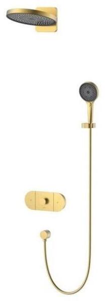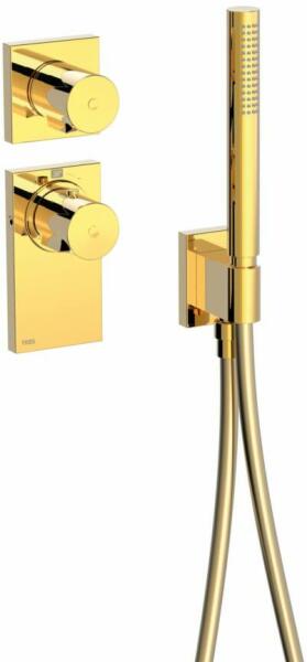 Falba építhető kivitel Tartalmazza a termosztátos belső egységet Vízkőmentesített kézi zuhannyal Szatén zuhanytömlővel Arany színben