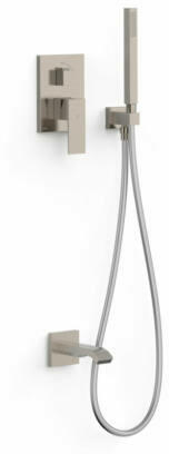 Falba építhető kivitel Tartalmazza a belső egységet Egykaros, kétutas zuhanycsaptelep Kádtöltővel Vízkőmentesített kézi zuhannyal és fali tartóval Szatén zuhanytömlővel Rozsdamentes acél színben