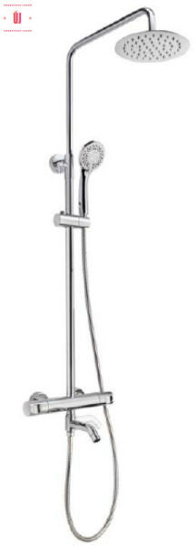NERO Thermo-Pro-2 falra szerelhető zuhanyrendszer falon kívüli felszállócsővel, króm színben. A váltókapcsoló segítségével a víz folyása a zuhanyrózsából vagy a 25 cm-es fejzuhanyból történhet. A szett része egy termosztátos zuhanycsaptelep, ami formavilágában is illeszkedik a kerek kialakítású esőztetőhöz és kézizuhanyhoz. Csaptelep: anyaga sárgaréz 35 mm-es ke