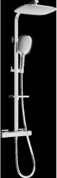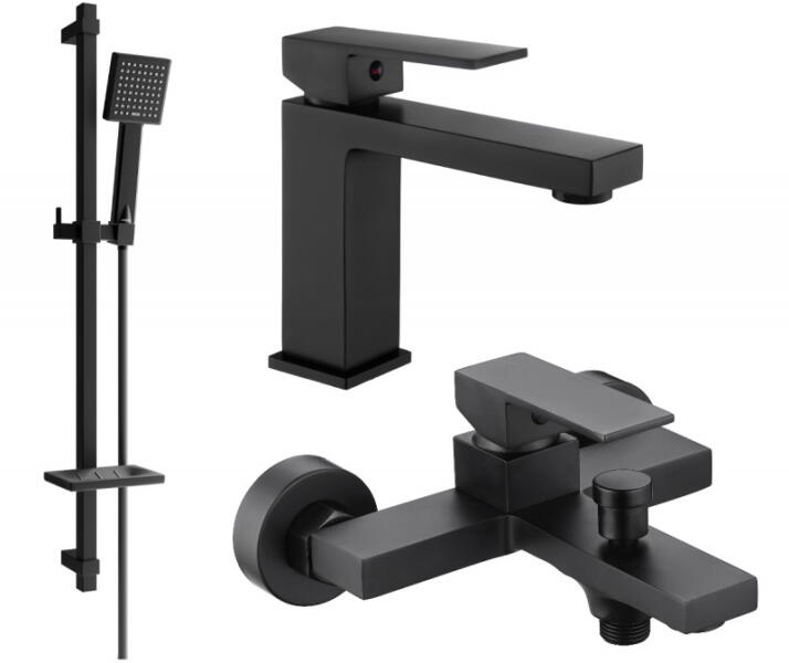 Kuchinox Cubi, zuhanygarnitúra termosztatikus csapteleppel és esőzuhannyal, fekete, PKU 70TD Gyártó: Kuchinox Sorozat: Cubi Katalógusszám: PKU 70TD Szerelés: falra Szerelési távolság: 150 mm Szín: Matt fekete ANYAG: rozsdamentes acél, ABS, műanyag, sárgaréz Eső felső fej: 25x25 cm, vékony (vékony) kivitel A fejhallgató mérete: 198 × 29 mm Oszlophossz: 970 mm Kézfej: 1-funkc