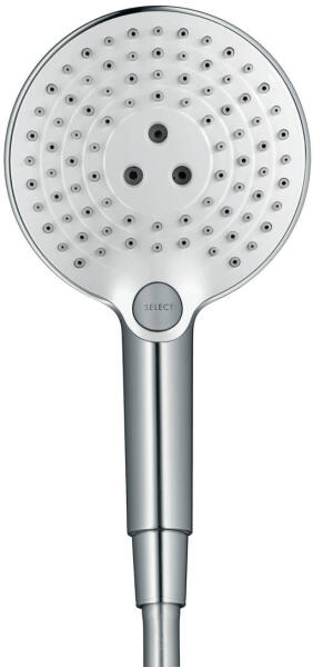 Hansgrohe Raindance Select S króm-fehér kézi zuhanyfej 120 3jet 26530400 zuhanyfej mérete: 125 mm kényelmes vízsugár választás a Select gombbal vízsugár fajta: Rain, RainAir, Whirl maximális átfolyási mennyiség 3 bar mellett: 15 l/perc belső vízvezetéssel kiöblíthető beépített szűrővel csatlakozómenet G ½ átfolyós vízmelegítőkhöz alkalmas Kérdés esetén munkatár