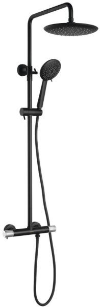 Sapho Solaris termosztátos zuhanyrendszer, matt fekete / matt króm WD139BC Garancia: 6 év Telepítés: falra Anyag: réz Súly: 5,92 kg Zuhanykar hossza: 365 mm Magasság: 908 - 1308 mm (állítható oszlopmagasság) Kezelőkar: termosztátos AirMix rendszer AntiC alc system HiTech Term égésvédelem Forma: kerek Szín: matt fekete / matt króm AirMix: Víz és levegő keverő rendszer. Vizet