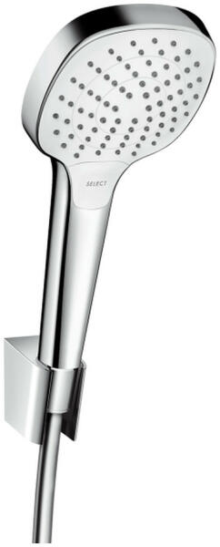 Hansgrohe Croma Select E, zuhanygarnitúra 110 Vario tömlővel 1600 mm, fehér/króm, HAN-26413400 Termékleírás és paraméterek A csomag tartalma: kézi zuhany nem állítható zuhanytartó zuhanycső Isiflex 1600 mm Zuhanyfej mérete: Ø 110 mm Áramlás típusa: Rain, IntenseRain, TurboRain Kényelmes váltás a Select gombbal Maximális térfogatáram 3 bar nyomáson: 14,7 l/perc Min. ára