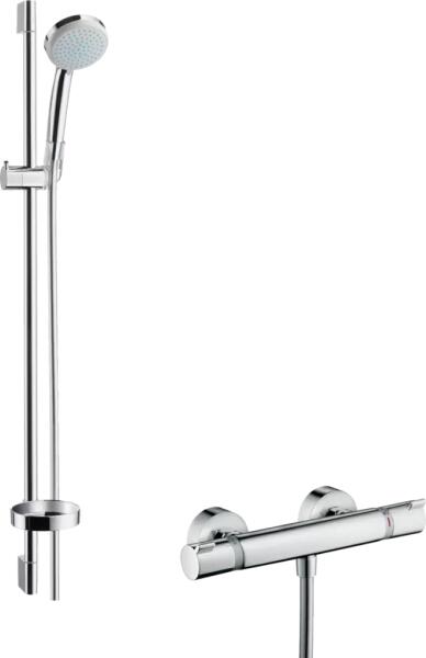 tartalmazza a következőket: kézizuhany, termosztátos zuhanycsaptelep, zuhanyrúd, zuhanytartó csúszka, szappantartó, zuhanytömlőfejzuhany mérete: 100 mmfejzuhany vízsugártípusa: normál vízsugár, Rain, Masszázs vízsugár, sampon vízsugárvízsugár fajta kiválasztása forgatható vízsugártárcsávalmaximális átfolyási mennyiség 3 bar mellett: 18 l/perczuhanytartó rúd: ke