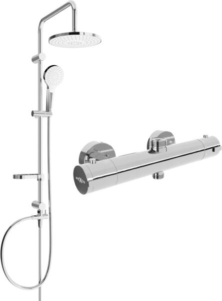 Műszaki adatok: Oszlop anyaga: rozsdamentes acél, ABS Oszlop befejezése: króm Magasság: 950 mm Oszlop szélesség: 22 mm Távolság a faltól: 380 mm Szappantartó Csúszó tartó a kézfejhez Állítható tartókonzolok Esőzuhany anyaga: műanyag Esőzuhany bevonat: króm / fehér Zuhanyfej mérete: ø225 mm Fej anyaga: műanyag Kézidarab felület: króm / fehér Funkciók száma: 3 Csatla