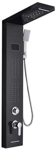 Zuhanypanel, LED-es és fürdőfunkciós modell, fekete. _x000D_ _x000D_ Kívülről korrózióálló réteggel van bevonva, amely biztosítja a hosszú távú használatot. _x000D_ _x000D_ A panel digitális kijelzővel van felszerelve. _x000D_ _x000D_ Kiváló szűrés a több szűrőnek köszönhetően. _x000D_ A panel a falra van szerelve. _x000D_ _x000D_ A a csomag tartalma:_x000D_ _x000D_ -