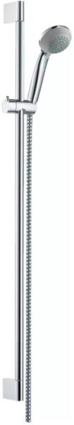 tartalmazza a következőket: kézizuhany, zuhanyrúd, zuhanytömlő, zuhanytartó csúszkafejzuhany mérete: 85 mmvízsugár fajta: normál vízsugárdőlésszöge 90°-kal állítható, a kézizuhanytartó balra és jobbra, valamint felfelé és lefelé elfordíthatómaximális átfolyási mennyiség 3 bar mellett: 16 l/percfalra szerelhető: rögzítő csavarműanyag fali tartócsőhossz: 959 m