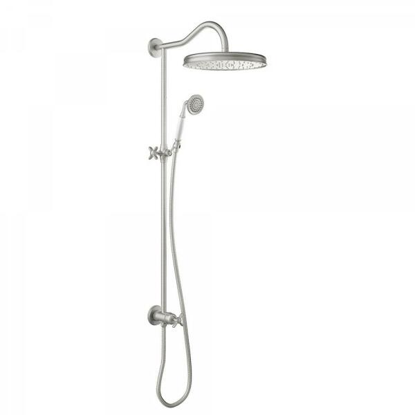 Egy fogantyúval 310 mm-es gömbcsuklós fejzuhannyal Vízkőmentesített kézi zuhannyal Duplán reteszelt zuhanytömlővel Acél színben