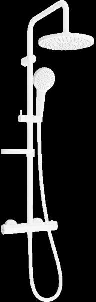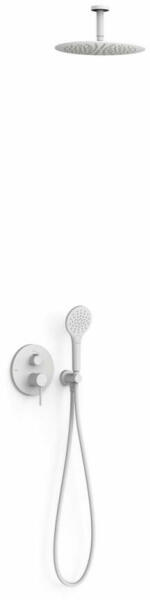 Falba építhető kivitel Tartalmazza a belső egységet Egykaros zuhanycsaptelep 300 mm-es gömbcsuklós mennyezeti fejzuhannyal 110 mm-es 3 funkciós, vízkőmentesített kézi zuhannyal és fali tartóval Szatén zuhanytömlővel Matt fehér színben