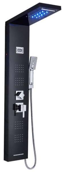 Zuhanypanel, LED-es és fürdőfunkciós modell, fekete. _x000D_ _x000D_ Kívülről korrózióálló réteggel van bevonva, amely biztosítja a hosszú távú használatot. _x000D_ _x000D_ A panel digitális kijelzővel van felszerelve. _x000D_ _x000D_ Kiváló szűrés a több szűrőnek köszönhetően. _x000D_ A panel a falra van szerelve. _x000D_ _x000D_ A a csomag tartalma:_x000D_ _x000D_ -