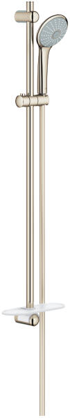 TERMÉKLEÍRÁS az alábbiakból áll: kézizuhany Massage (27 221) maximum flow rate (at 3 bar): 16 l/min zuhanyrúd, 900 mm (27 500) Silverflex zuhanygégecső 1750 mm (28 388 000) GROHE EasyReach polc (27 596) GROHE DreamSpray tökéletes zuhanysugár GROHE Long-Life felületkezelés GROHE SprayDimmer (fokozatosan állítható vízmennyiség) GROHE FastFixation (a felső konzol állítható a m