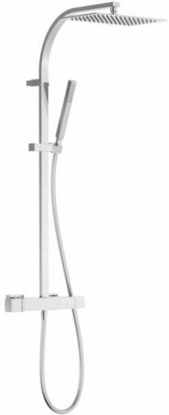 Termosztátos zuhanycsaptelep 300 x 200 mm-es gömbcsuklós fejzuhany Vízkőmentesített kézi zuhany Szatén zuhanytömlő Zuhanyváltó integrált átfolyáskorlátozóval Króm kivitel